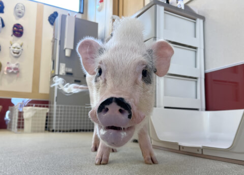 マイクロチップを装着し、日本獣医師会が管理するデータベースに登録。ブタさんが迷子になり保護されたときに身元確認が可能。