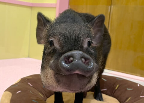 マイクロチップを装着し、日本獣医師会が管理するデータベースに登録。ブタさんが迷子になり保護されたときに身元確認が可能。