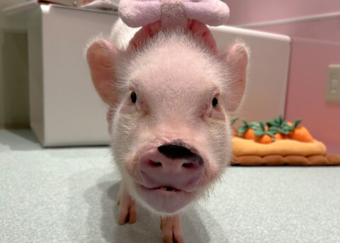 マイクロチップを装着し、日本獣医師会が管理するデータベースに登録。ブタさんが迷子になり保護されたときに身元確認が可能。