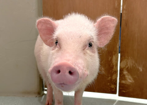 マイクロチップを装着し、日本獣医師会が管理するデータベースに登録。ブタさんが迷子になり保護されたときに身元確認が可能。