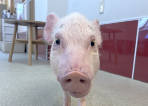 マイクロチップを装着し、日本獣医師会が管理するデータベースに登録。ブタさんが迷子になり保護されたときに身元確認が可能。