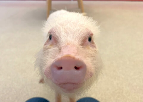 マイクロチップを装着し、日本獣医師会が管理するデータベースに登録。ブタさんが迷子になり保護されたときに身元確認が可能。
