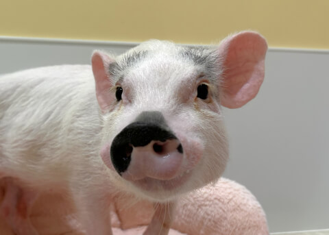 マイクロチップを装着し、日本獣医師会が管理するデータベースに登録。ブタさんが迷子になり保護されたときに身元確認が可能。