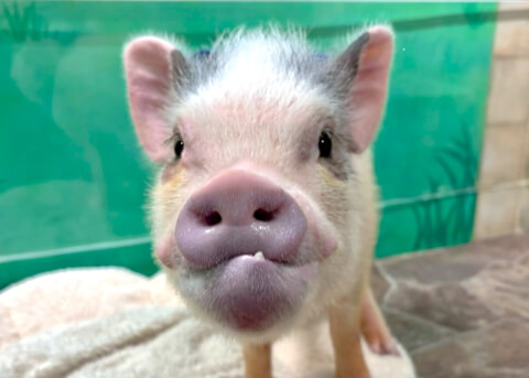 マイクロチップを装着し、日本獣医師会が管理するデータベースに登録。ブタさんが迷子になり保護されたときに身元確認が可能。