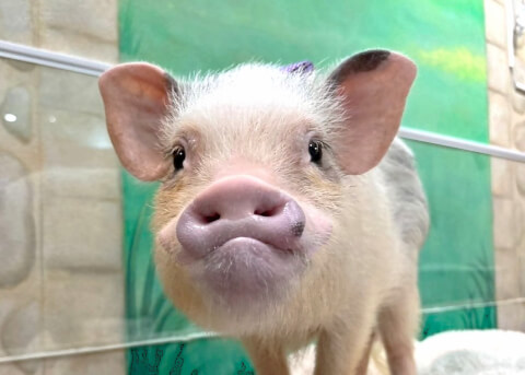 マイクロチップを装着し、日本獣医師会が管理するデータベースに登録。ブタさんが迷子になり保護されたときに身元確認が可能。