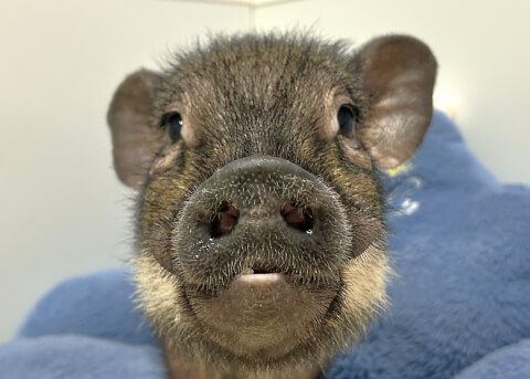 マイクロチップを装着し、日本獣医師会が管理するデータベースに登録。ブタさんが迷子になり保護されたときに身元確認が可能。