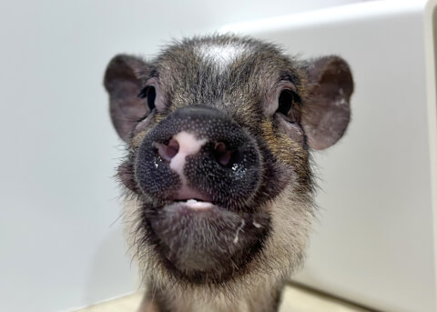 マイクロチップを装着し、日本獣医師会が管理するデータベースに登録。ブタさんが迷子になり保護されたときに身元確認が可能。