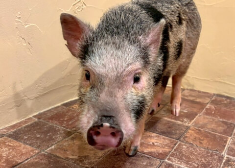 マイクロチップを装着し、日本獣医師会が管理するデータベースに登録。ブタさんが迷子になり保護されたときに身元確認が可能。