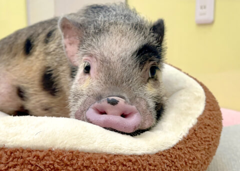マイクロチップを装着し、日本獣医師会が管理するデータベースに登録。ブタさんが迷子になり保護されたときに身元確認が可能。