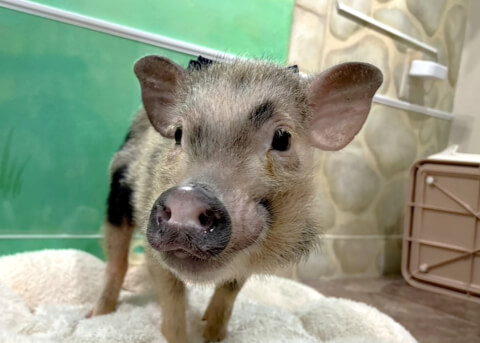 マイクロチップを装着し、日本獣医師会が管理するデータベースに登録。ブタさんが迷子になり保護されたときに身元確認が可能。