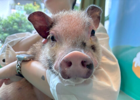 マイクロチップを装着し、日本獣医師会が管理するデータベースに登録。ブタさんが迷子になり保護されたときに身元確認が可能。