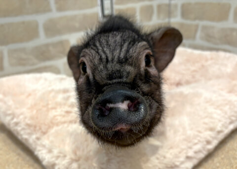マイクロチップを装着し、日本獣医師会が管理するデータベースに登録。ブタさんが迷子になり保護されたときに身元確認が可能。
