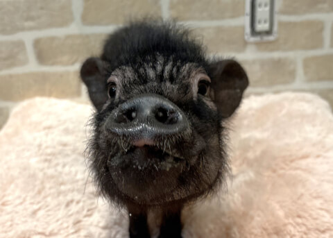 マイクロチップを装着し、日本獣医師会が管理するデータベースに登録。ブタさんが迷子になり保護されたときに身元確認が可能。