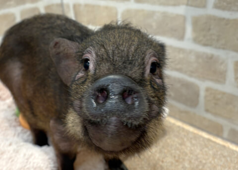 マイクロチップを装着し、日本獣医師会が管理するデータベースに登録。ブタさんが迷子になり保護されたときに身元確認が可能。