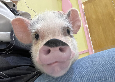 マイクロチップを装着し、日本獣医師会が管理するデータベースに登録。ブタさんが迷子になり保護されたときに身元確認が可能。