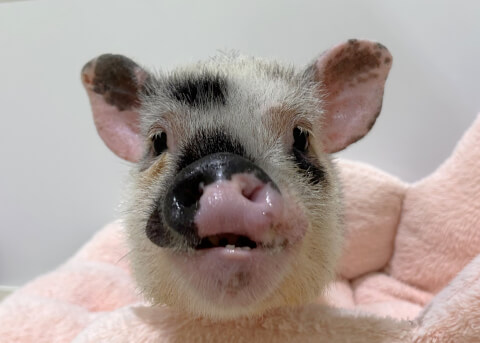 マイクロチップを装着し、日本獣医師会が管理するデータベースに登録。ブタさんが迷子になり保護されたときに身元確認が可能。