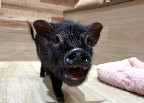 マイクロチップを装着し、日本獣医師会が管理するデータベースに登録。ブタさんが迷子になり保護されたときに身元確認が可能。