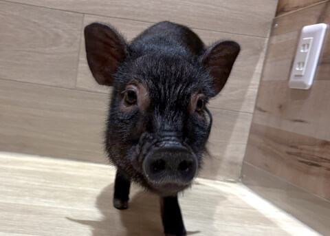 マイクロチップを装着し、日本獣医師会が管理するデータベースに登録。ブタさんが迷子になり保護されたときに身元確認が可能。