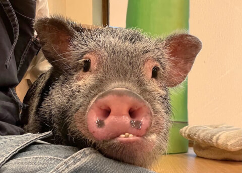 マイクロチップを装着し、日本獣医師会が管理するデータベースに登録。ブタさんが迷子になり保護されたときに身元確認が可能。