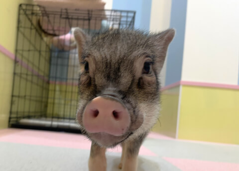 マイクロチップを装着し、日本獣医師会が管理するデータベースに登録。ブタさんが迷子になり保護されたときに身元確認が可能。