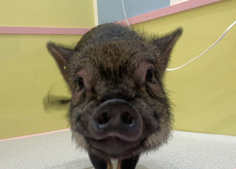 マイクロチップを装着し、日本獣医師会が管理するデータベースに登録。ブタさんが迷子になり保護されたときに身元確認が可能。