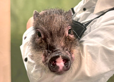 マイクロチップを装着し、日本獣医師会が管理するデータベースに登録。ブタさんが迷子になり保護されたときに身元確認が可能。