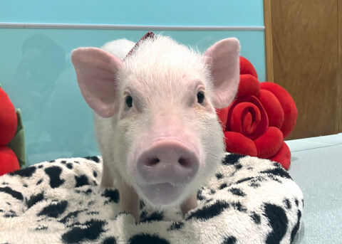 マイクロチップを装着し、日本獣医師会が管理するデータベースに登録。ブタさんが迷子になり保護されたときに身元確認が可能。