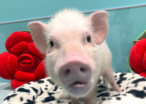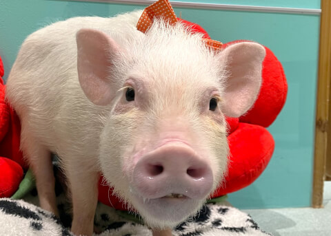 マイクロチップを装着し、日本獣医師会が管理するデータベースに登録。ブタさんが迷子になり保護されたときに身元確認が可能。