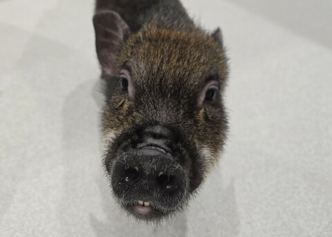 マイクロチップを装着し、日本獣医師会が管理するデータベースに登録。ブタさんが迷子になり保護されたときに身元確認が可能。