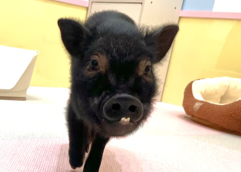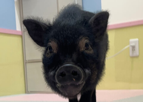 マイクロチップを装着し、日本獣医師会が管理するデータベースに登録。ブタさんが迷子になり保護されたときに身元確認が可能。