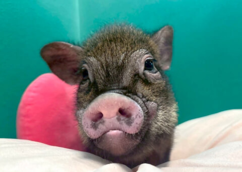 マイクロチップを装着し、日本獣医師会が管理するデータベースに登録。ブタさんが迷子になり保護されたときに身元確認が可能。