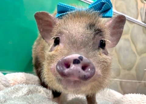 マイクロチップを装着し、日本獣医師会が管理するデータベースに登録。ブタさんが迷子になり保護されたときに身元確認が可能。