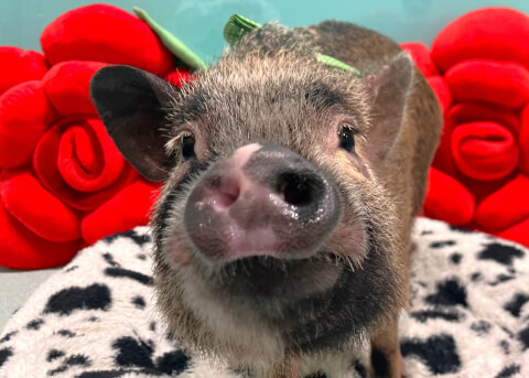 マイクロチップを装着し、日本獣医師会が管理するデータベースに登録。ブタさんが迷子になり保護されたときに身元確認が可能。