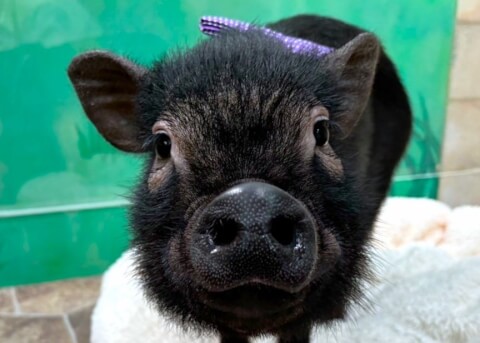 マイクロチップを装着し、日本獣医師会が管理するデータベースに登録。ブタさんが迷子になり保護されたときに身元確認が可能。