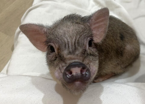 マイクロチップを装着し、日本獣医師会が管理するデータベースに登録。ブタさんが迷子になり保護されたときに身元確認が可能。
