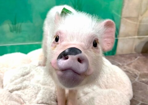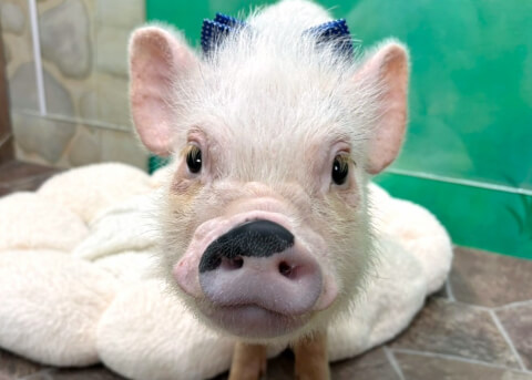 マイクロチップを装着し、日本獣医師会が管理するデータベースに登録。ブタさんが迷子になり保護されたときに身元確認が可能。