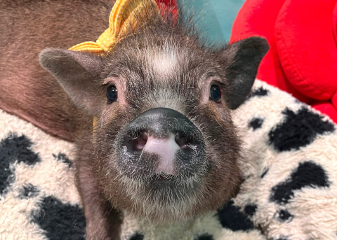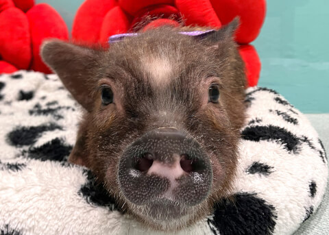 マイクロチップを装着し、日本獣医師会が管理するデータベースに登録。ブタさんが迷子になり保護されたときに身元確認が可能。
