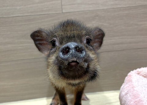 マイクロチップを装着し、日本獣医師会が管理するデータベースに登録。ブタさんが迷子になり保護されたときに身元確認が可能。