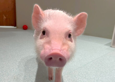 マイクロチップを装着し、日本獣医師会が管理するデータベースに登録。ブタさんが迷子になり保護されたときに身元確認が可能。