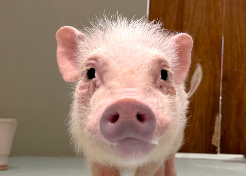 マイクロチップを装着し、日本獣医師会が管理するデータベースに登録。ブタさんが迷子になり保護されたときに身元確認が可能。