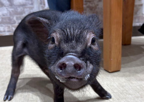 マイクロチップを装着し、日本獣医師会が管理するデータベースに登録。ブタさんが迷子になり保護されたときに身元確認が可能。