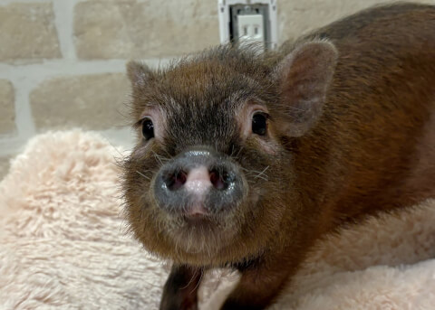 マイクロチップを装着し、日本獣医師会が管理するデータベースに登録。ブタさんが迷子になり保護されたときに身元確認が可能。