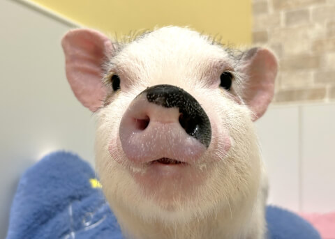 マイクロチップを装着し、日本獣医師会が管理するデータベースに登録。ブタさんが迷子になり保護されたときに身元確認が可能。