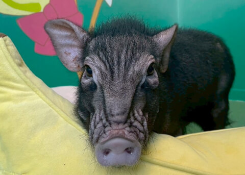 マイクロチップを装着し、日本獣医師会が管理するデータベースに登録。ブタさんが迷子になり保護されたときに身元確認が可能。