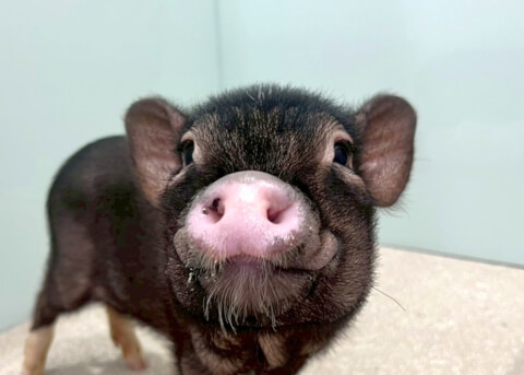 マイクロチップを装着し、日本獣医師会が管理するデータベースに登録。ブタさんが迷子になり保護されたときに身元確認が可能。