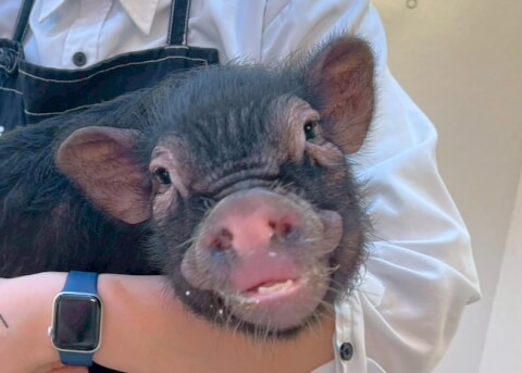 マイクロチップを装着し、日本獣医師会が管理するデータベースに登録。ブタさんが迷子になり保護されたときに身元確認が可能。