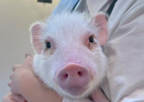 マイクロチップを装着し、日本獣医師会が管理するデータベースに登録。ブタさんが迷子になり保護されたときに身元確認が可能。