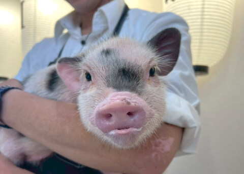 マイクロチップを装着し、日本獣医師会が管理するデータベースに登録。ブタさんが迷子になり保護されたときに身元確認が可能。