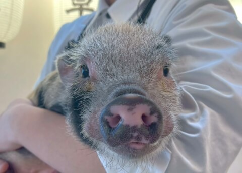 マイクロチップを装着し、日本獣医師会が管理するデータベースに登録。ブタさんが迷子になり保護されたときに身元確認が可能。