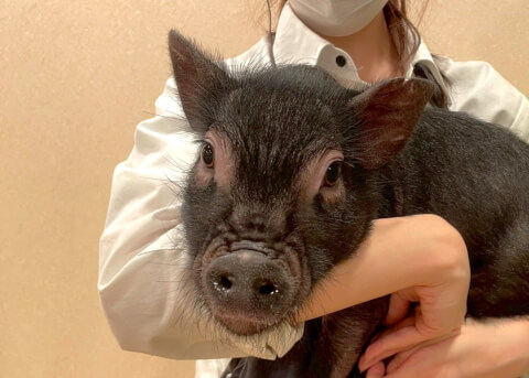 マイクロチップを装着し、日本獣医師会が管理するデータベースに登録。ブタさんが迷子になり保護されたときに身元確認が可能。